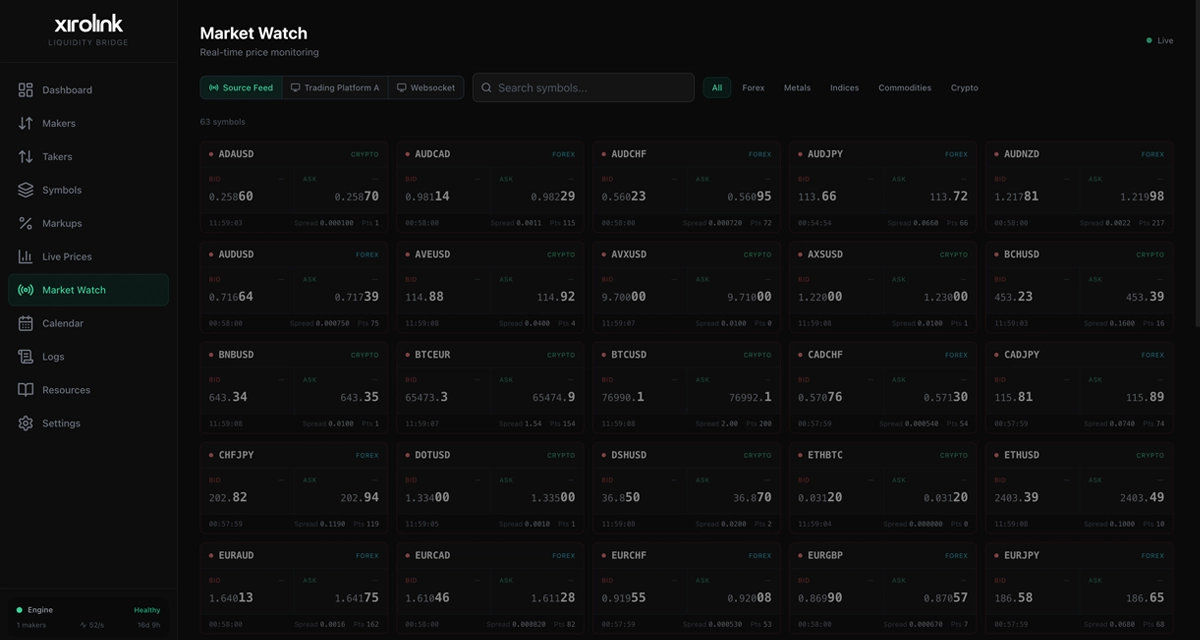 Seamless MT4, MT5, and cTrader connectivity with bridge and liquidity solutions.