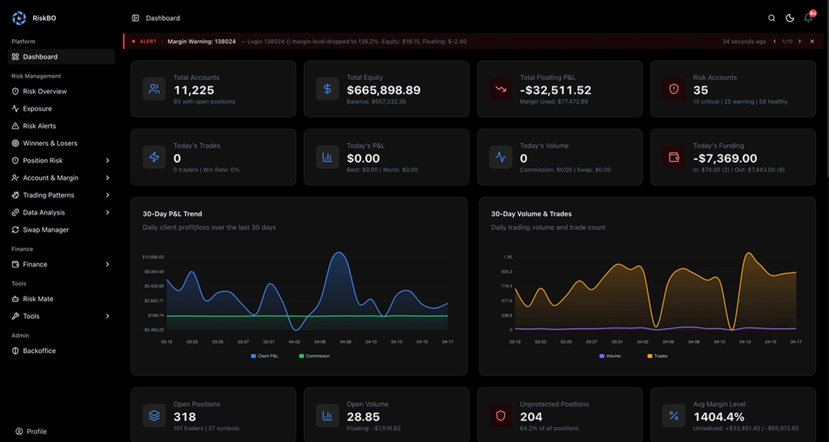 Real-time exposure monitoring and automated risk controls for your brokerage operations.